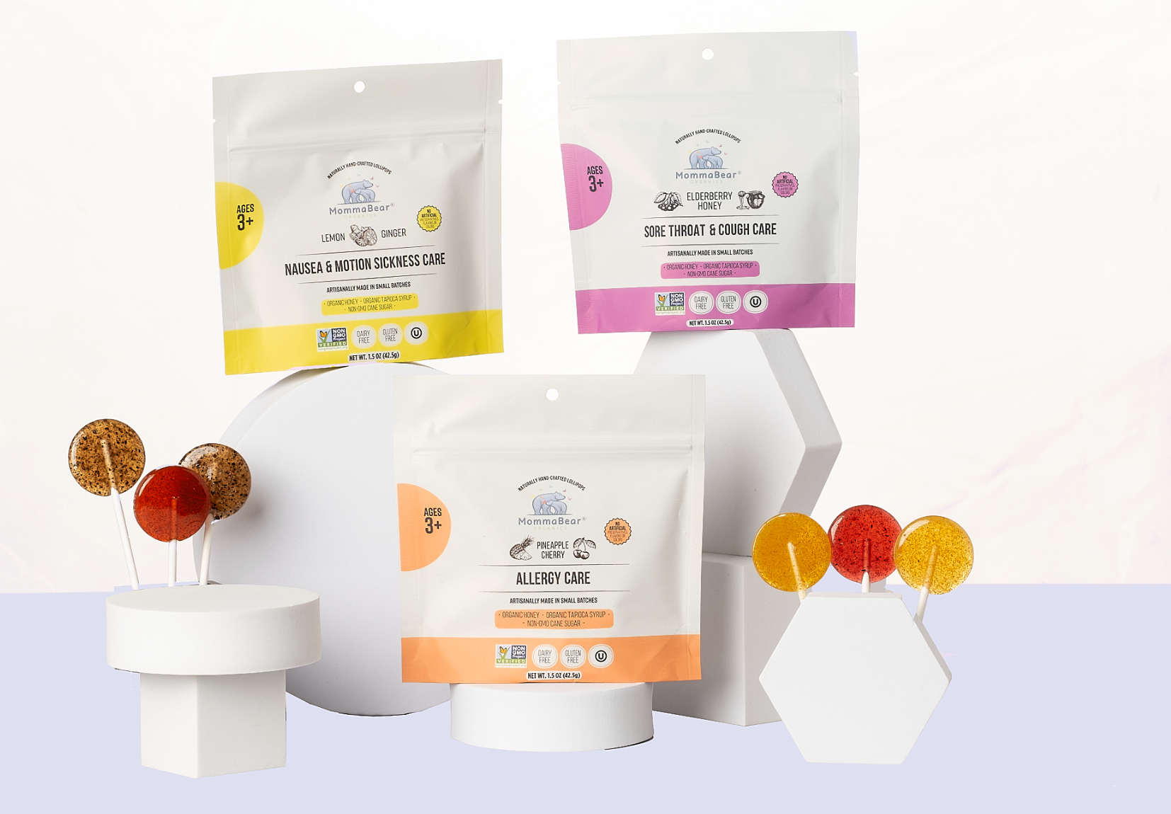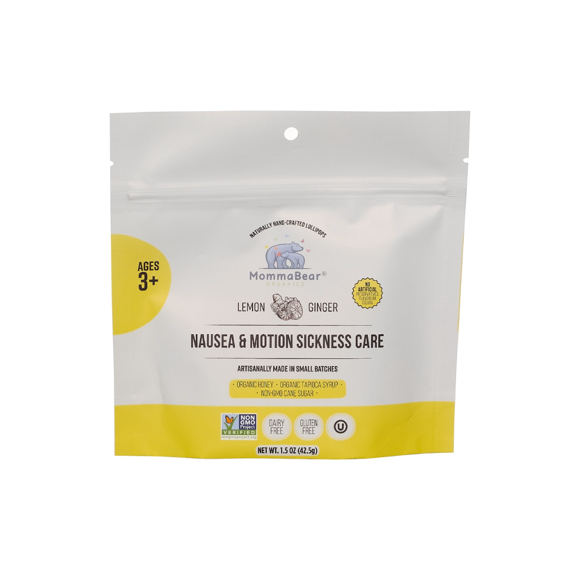 For temporary uneasiness due to motion sickness or otherwise, Lemon and Ginger Nausea & Motion Sickness Aid Lollipops gently soothe discomfort. Organic honey and tapioca syrup give a naturally sweet flavor, while honey’s antibacterial properties also aid in digestion. Concentrated lemon and ginger oils stimulate the immune system, alleviate nausea and help with an upset digestive system.